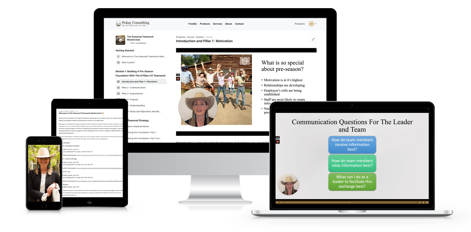 "I felt this course to be incredibly informative and very user friendly. I believe the group exercises and team building is extremely useful within the guest ranch industry. I found the heavy focus on constructive management styles as well as Lauren's tips and experience within the industry incredibly useful for my own management. The practice of building your employees confidence and creating an environment for them to succeed and thrive was specifically helpful for me. Those examples along with the emphasis on maintaining moral and creating a positive work experience make this program a must have for dude ranches that wish to have a high rate of return staff."